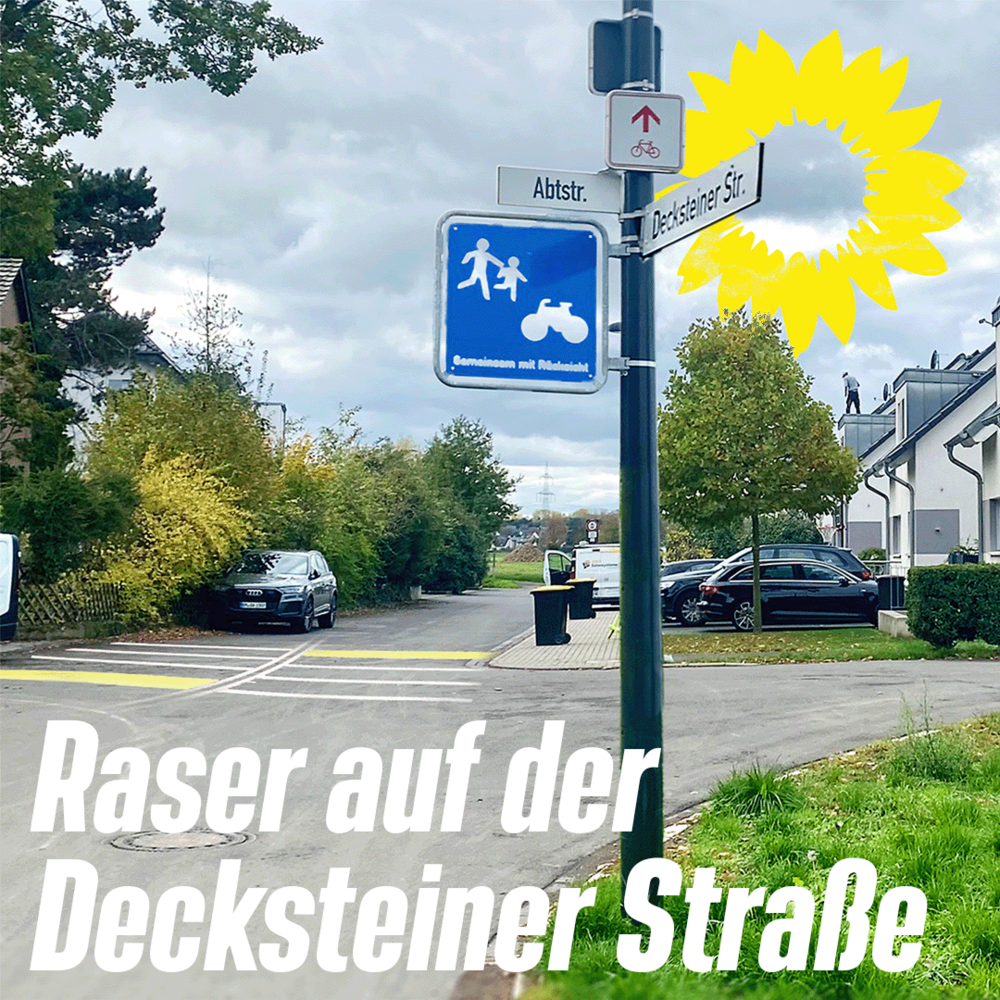 In der Decksteiner Straße ist es in letzter Zeit vermehrt zu Beschwerden von Anwohnenden über rücksichtsloses Verhalten von Radfahrenden gekommen. Da es sich um eine Wohngegend mit jungen Familien handelt, gibt es hier auch viele spielende Kinder auf der Straße. Gleichzeitig stellt diese Straße eine sehr gute Radwegeverbindung nach Köln dar.Deshalb wird sie gerade am Wochenende von vielen Radfahrer*innen genutzt.