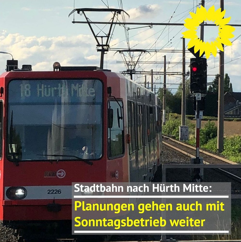 Die Hürther Grünen sind im Wahlkampf damit angetreten, die Verkehrswende in Hürth voranzubringen, indem Alternativen zur Fahrt mit dem eigenen Auto attraktiver werden. „Die Stadtbahn ist dafür ein wichtiger Baustein, da sie die Stadtteile und die Nachbarstädte in kurzer Zeit erreichbar macht“, meint Inge Cürten-Noack, Ratsmitglied der Grünen. Der Betrieb der Stadtbahn wird nach ersten Schätzungen der Verkehrsbetriebe Köln etwa 1 Million Euro pro Jahr kosten, 100 000 Euro würden eingespart, wenn auf den Betrieb am Sonntag verzichtet würde. „Die Verkehrswende kostet auch Geld, aber dabei darf man nicht vergessen, dass jedes Jahr auch große Summen in den Straßenbau gehen, nur haben wir uns daran gewöhnt. Letztlich kommt es darauf an Prioritäten zu setzen, so dass Alternativen bequem genug werden und die Menschen sie der Fahrt mit eigenen Auto vorziehen“ ist sich Hendrik Fuchs, Sprecher der Grünen im Stadtrat, sicher.