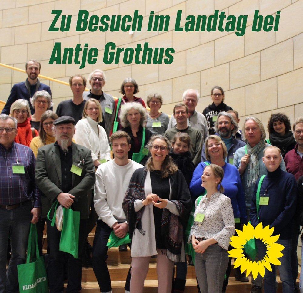 Eine dreißigköpfige Delegation aus Erftstadt, Brühl, Euskirchen, Bergheim und Hürth folgte der Einladung unserer Landtagskandidatin Antje Grothus. Insgesamt 8 Hürther*innen wollten sich ein Bild vom Landtag machen und der darin stattfindenden Arbeit. Aufgeklärt wurde über den immer halb leeren Saal, der deswegen so aussieht, weil nur die themenspezifischen Sprecher der Parteien jeweils im Plenarsaal sind, und der Rest in den Fachausschüssen sitzt. Auch über die angeblich so üppigen Diäten, von denen nach Steuern und Abgaben grade mal ein Drittel netto bei den Abgeordneten verbleibt. Im Plenarsaal tobte gerade die Haushaltsdebatte, der wir von der Tribüne aus lauschen durften. Die Diskussion mit Antje danach befasste sich mit dem Strukturwandel im Rhein-Erft-Kreis und wie sich der Abschied von der einstigen Wohlstandslokomotive Braunkohle zukünftig emissionsfrei gestalten lässt. Energie für eine gesunde Wirtschaft, Arbeitsplätze und gleichzeitig eine intakte Lebensumwelt zu erhalten, bleibt die große Aufgabe in dieser Legislaturperiode. 39 Grüne sind in Düsseldorf für uns in der Pflicht, so viele wie noch nie zuvor.