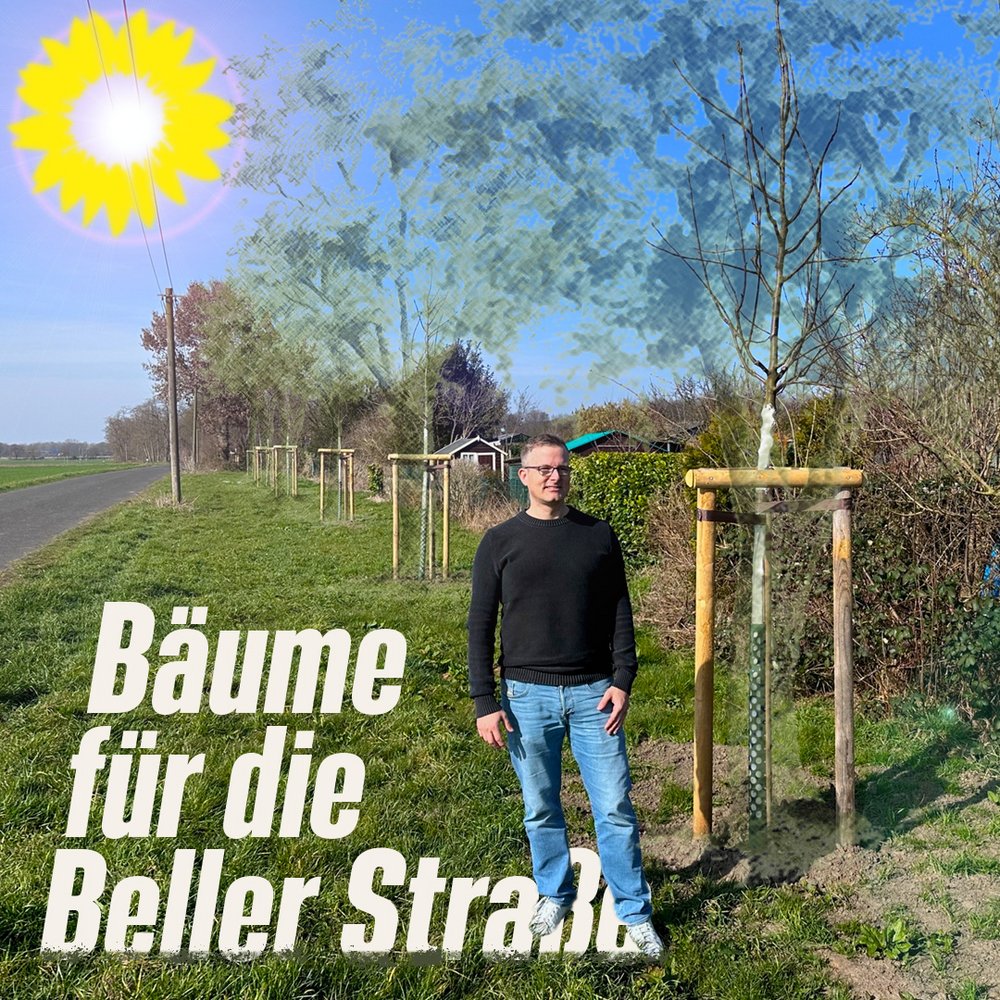 „Die Planung einer den Fuß- und Radweg beschattenden Baumreihe im Südwesten der Beller Straße wurde leider von vornherein ausgeschlossen. Für die Bürger, die diesen Weg gerne für Spaziergänge nutzen, hätte diese Lösung die positive Wirkung optimiert“, erklärt Inge Cürten-Noack, grünes Ratsmitglied und Mitglied im Planungsausschuss. „Gleichzeitig wäre es möglich gewesen, größere Bäume zu wählen, die der an heißen Sommertagen oft sehr staubige Luft zu mehr Sauerstoff verholfen hätten.“ Nunmehr fiel die Wahl auf eine kleinkronige Sorte, um den dahinter liegenden Gärten keine Verschattung zuzumuten.“