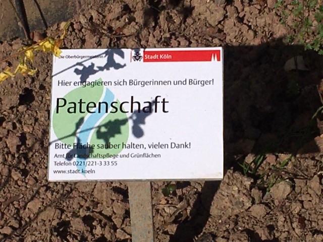 Die Stadtwerke werden gebeten, für Flächen mit Baumpatenschaften/Baumscheiben¬paten-schaften ein Steckschild herzustellen, um das bürgerliche Engagement kenntlich zu machen und der Verunreinigung entgegenzuwirken. Dieses soll bei bestehenden Pflegeverträgen und Neupatenschaften an die Pflegenden ausgegeben werden.