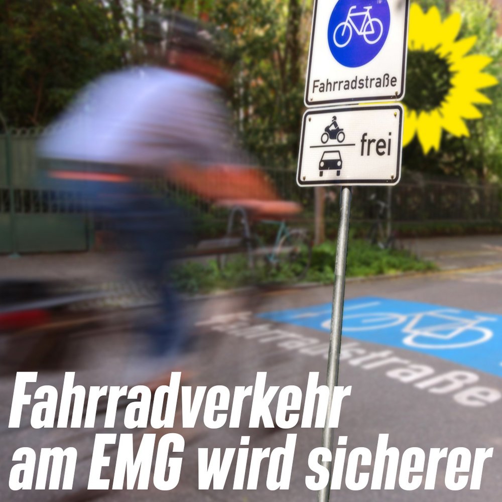 Hürth bekommt eine weitere Fahrradstraße, um den Radverkehr vor dem Ernst-Mach-Gymnasium (EMG) sicherer zu machen. Der Abschnitt der Bonnstraße zwischen Thetforder Straße und Hohlweg war bisher eine sogenannte unechte Einbahnstraße auf der es aber durch den Hol- und Bringverkehr zum EMG immer wieder zu gefährlichen Situationen für die radfahrenden Schüler und Schülerinnen kam - dies soll die Einrichtung einer Fahrradstraße nun verhindern. “Im weiteren Verlauf der Bonnstraße ist der Personenverkehr durch den versenkbaren Poller für den Bus und die sonstige Straßengestaltung sowieso beruhigt, so dass sich für den motorosierten Verkehr kaum etwas verändert, die Sicherheit für die Schüler aber gestärkt wird”, erklärt Clemens Cochius, Fraktiongeschäftsführer der Grünen auf und ergänzt: “ Auch wenn es 3 Jahre gedauert hat, freuen wir uns, wenn der Fahrradverkehr in Hürth an dieser Stelle gestärkt wird und hoffen auf weitere Verbesserungen!”