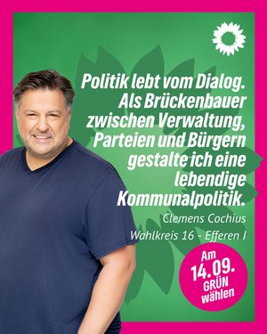 Als Wahl-Efferener seit 1997 leite ich als Geschäftsführer das Fraktionsbüro und bin in so gut wie allen Ausschüssen vertreten. Meine Lebens-, Schul- und Studiumserfahrung aus den USA und die anschließende Tätigkeit in Theater und Film prägen meinen Politikansatz.